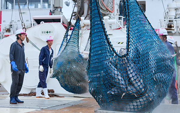 弊社の営むまき網漁業は、限りある尊い資源を「大切に育んでいく漁業」へと姿を変えていきました。まき網業界のリーダーとして、海洋環境保全に配慮した操業や業界トップの漁撈技術を常に磨き次世代に繋げていくことで「持続可能な漁業」の実現を追求し続けます。